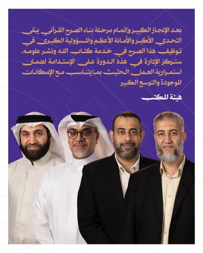 القرآن الكريم هو تبيان لكل شيء، فيه هدى ونور وعلوم الأوّلين والآخرين ، وهو دستور حياة للفرد والمجتمع. سنسعى – بإذن الله – إلى تدشين مركز الدراسات والبحوث القرآنية، وتشكيل فريق علمي وإداري يُسهم في تعزيز الثقافة القرآنية، وتوسيع أثرها في المجتمع